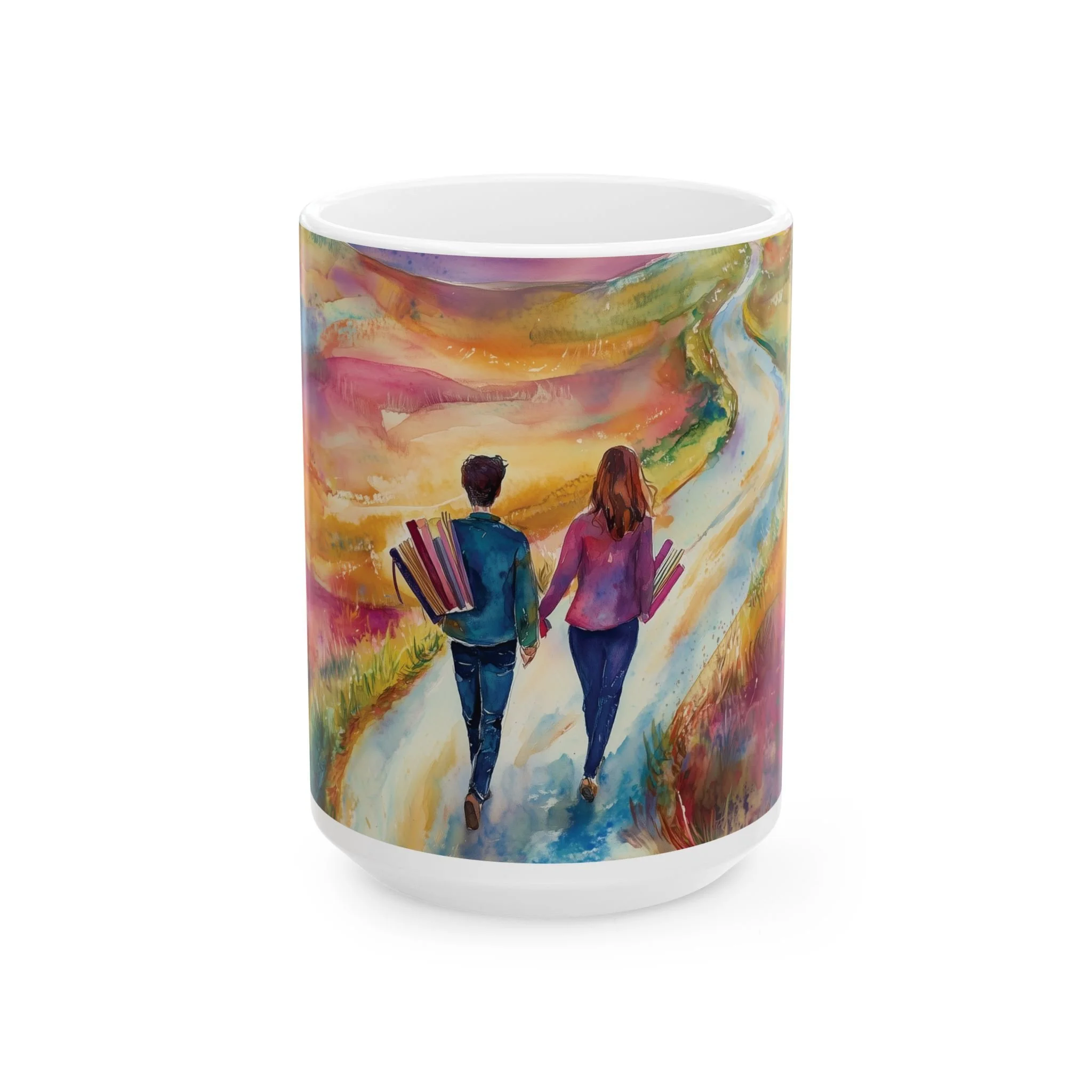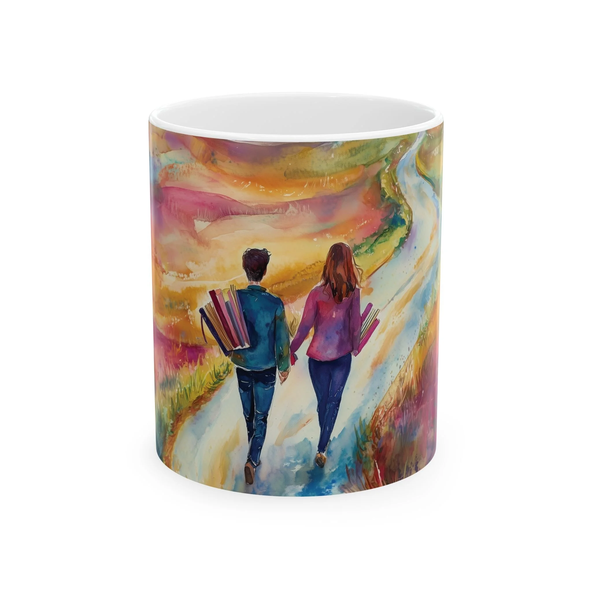 Carry your love for books and stories wherever you go with the Path of Stories Tote Bag. Featuring a breathtaking watercolor illustration of a couple walking hand in hand along a winding path, this artistic tote symbolizes the journeys we take through literature and imagination.